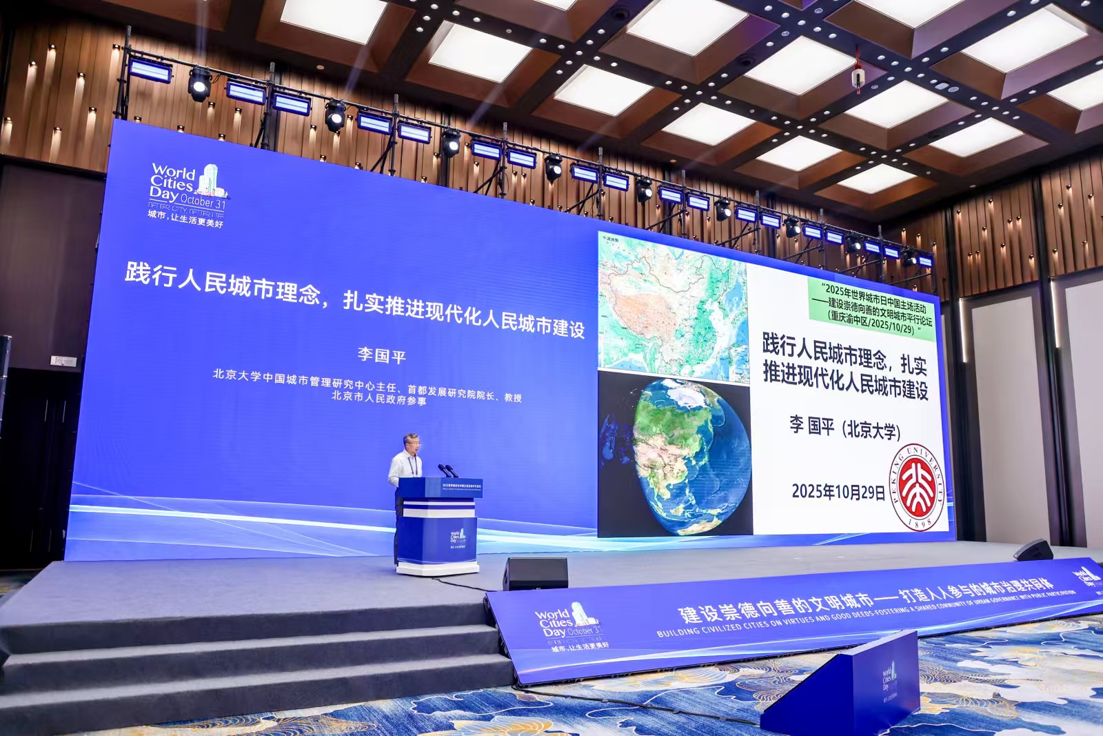 论坛上,北京大学首都发展研究院院长李国平教授作为四位主旨报告嘉宾之一,以“践行人民城市理念,扎实推进现代化人民城市建设”为题进行了演讲。李国平在演讲中强调,中国城市发展正经历从“量”到“质”、从“快”到“稳”的根本转变,“人民城市”理念是新时代中国特色社会主义城市发展规律的理论总结,体现了依靠人民、为了人民的城市哲学,为全球城市发展贡献了中国智慧。