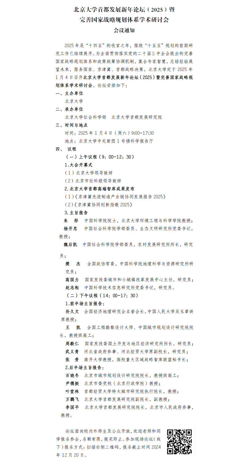 当前位置: 首页» 新闻中心» 通知公告» 北京大学首都发展新年论坛(2025)会议通知